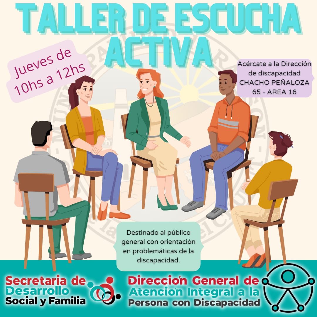 La Municipalidad de Rawson, a través de la Dirección General de Atención Integral a la Persona con Discapacidad, lanza nuevamente el Taller de Escucha Activa, destinado al público general con orientación en problemáticas de la discapacidad.