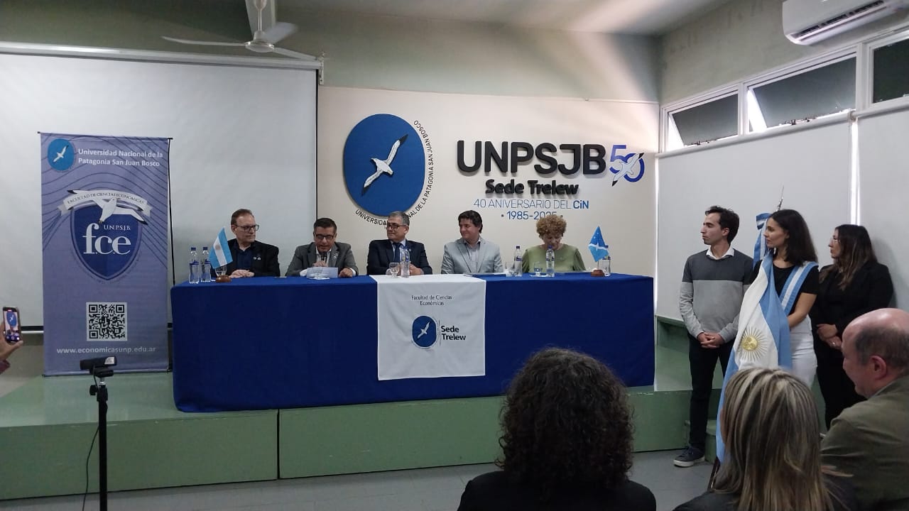 Agregó que “la Universidad pública cambia trayectorias, cambia oportunidades, cambia vidas. Como cambió la del decano que está saliendo hoy, como cambió la mía, como cambió la de muchos de los docentes y graduados que veo acá hoy, varios de ellos chicos de pueblos del interior de Chubut que hoy son destacados profesionales de las Ciencias Económicas”.