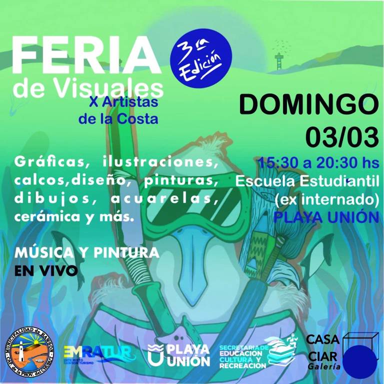 Así lo expresó la gerente del Ente Mixto Rawson Turístico, Natalia García. La fecha se reprogramó por cuestiones climáticas para este domingo 3 de marzo. La Feria de Visuales por artistas de la zona se llevará adelante de 15:30 a 20:30 horas en la Casa Estudiantil (ex internado) de la villa balnearia. Habrá gráficos, ilustraciones, calcos, diseño, pinturas, dibujos, acuarelas, cerámica, música en vivo y muchas actividades más.