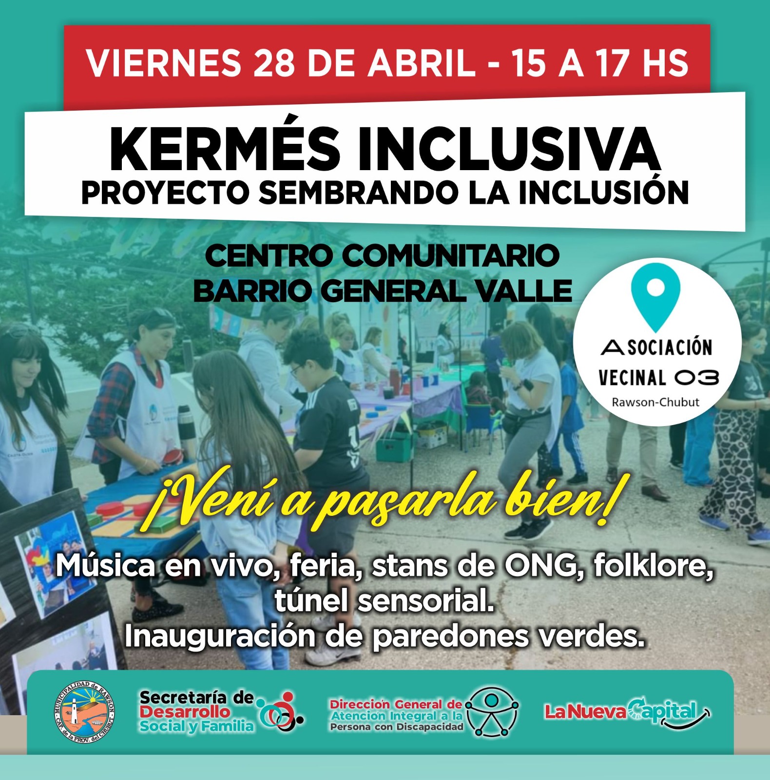 La Municipalidad de Rawson, a través de la Dirección General de Atención Integral a la Persona con Discapacidad, llevará adelante una Kermés Inclusiva, con el objetivo de concientizar sobre discapacidades. La actividad se desarrollará en el horario de 15 a 17.