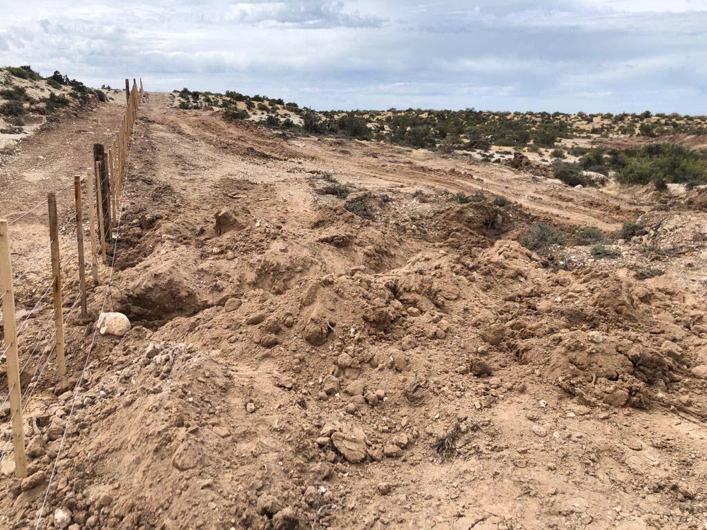 3- Sobre el trayecto de la franja afectada se constató la instalación un nuevo alambrado de 6 hilos, que además anexa un boyero electrificado, conectado a una batería con alimentación solar, el cual impide el libre tránsito de fauna nativa. La traza de camino alambrado se extiende, estimativamente, 700 metros tierra adentro en forma perpendicular hasta la costa, en donde continúa en forma paralela al mar por unos 60 metros aproximadamente. El boyero electrificado se extiende a lo largo de todo el alambrado y en diferentes sectores está a la altura de los pingüinos. En algunos sectores, la presencia de pequeños cañadones deja el alambrado a una altura que impediría el paso de estas aves, pero se observa que se ató la parte baja del alambrado a rocas, lo cual impide el tránsito de los pingüinos. Se pudo observar el desconcierto de los adultos que regresaban del mar pretendiendo retornar a sus nidos al ver a sus crías obstaculizadas para poder ingresar.