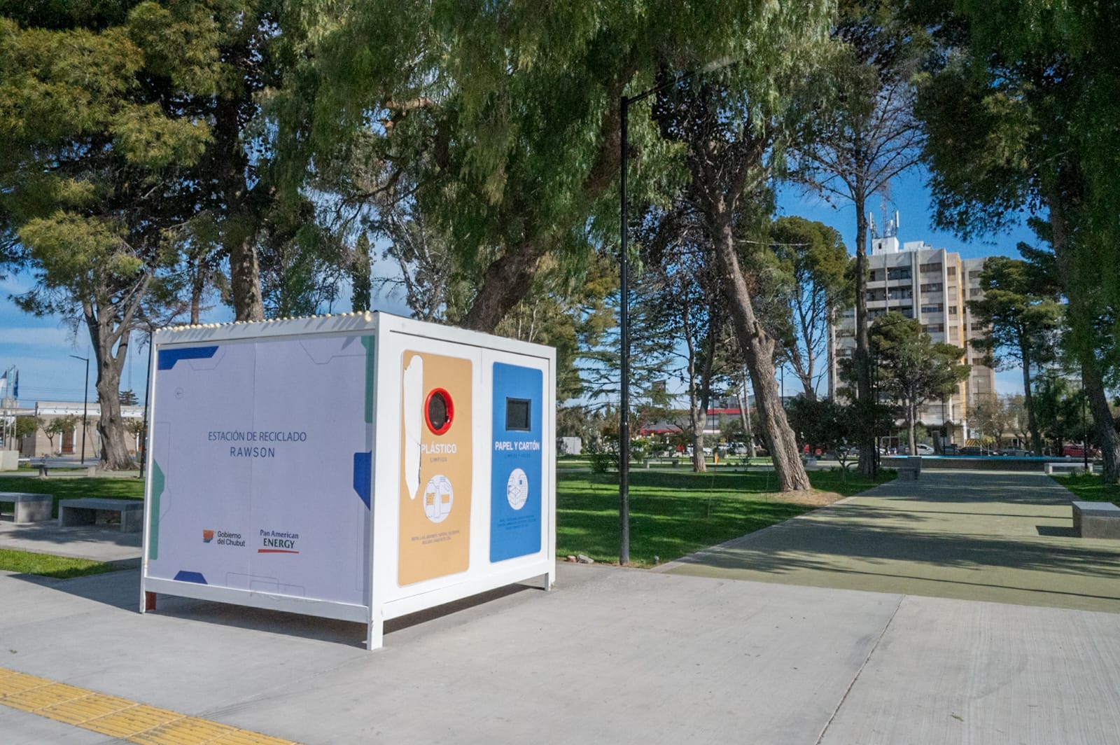 En el marco del 159° Aniversario, la Municipalidad de la ciudad Capital, recibió un segundo módulo de trabajos de reciclado, donado por la empresa Pan American Energy, con ubicación en la Plaza Guillermo Rawson.