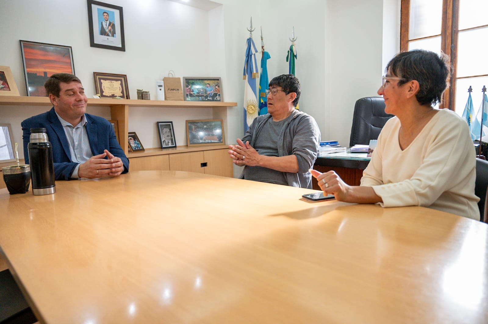En esta oportunidad, el mandatario municipal, Damián Biss, recibió a Néstor Rañileo, presidente, y a Eva Pezo, tesorera, del barrio capitalino Gregorio Mayo.