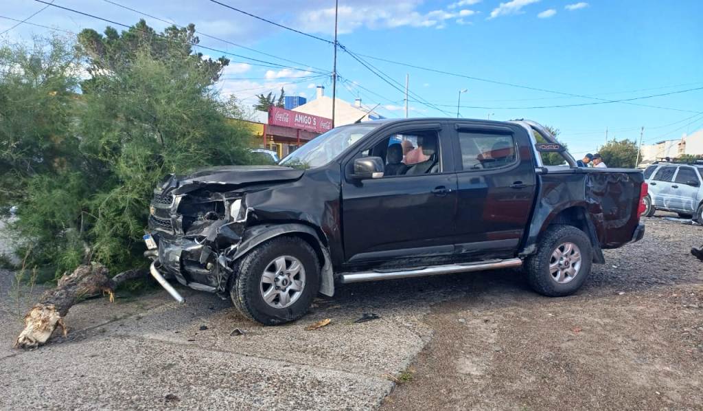 esquivar a otro rodado terminó subiendo a la vereda e impactando un poste de telefónica y a dos vehículos estacionados (entre ellos un colectivo) y por último concluyó contra un árbol, logrando arrancarlo de su lugar.