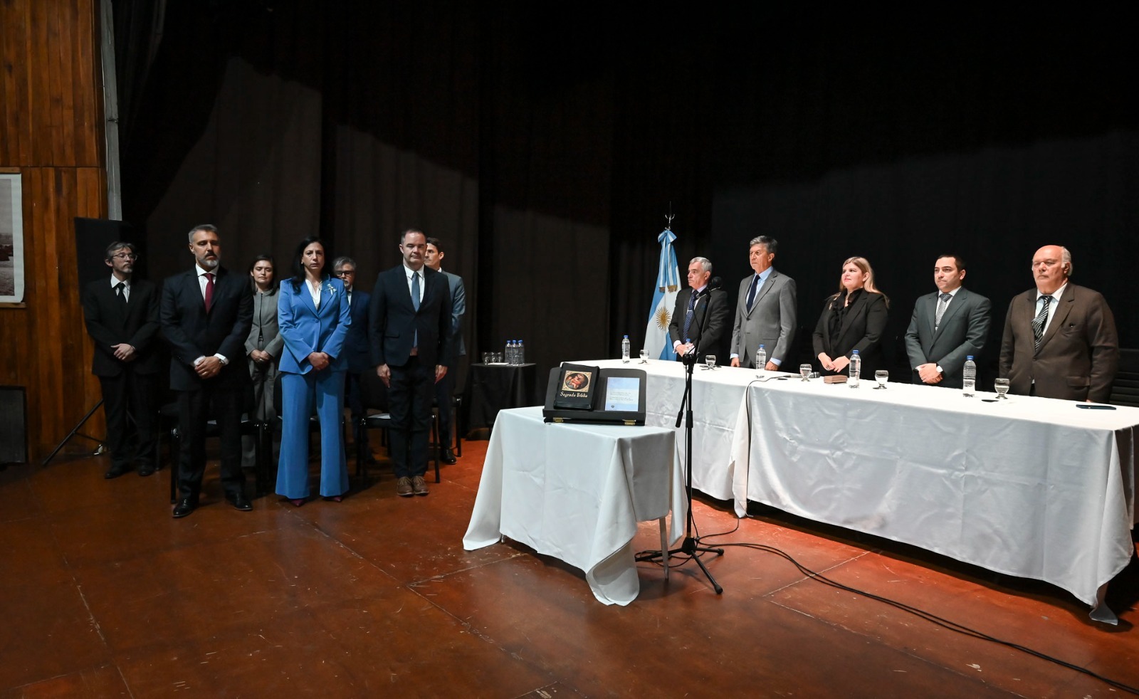 El acto se realizó en el Centro Cultural “José Hernández” de Rawson y fue presidido por la Dra. Camila Lucía Banfi Saavedra, vicepresidenta 1ª del Superior Tribunal de Justicia, y el vicegobernador de la provincia, Dr. Gustavo Menna. También estuvieron presentes los ministros del Superior Tribunal de Justicia: el Dr. Ricardo Alberto Napolitani (vicepresidente 2º), el Dr. Andrés Giacomone y el Dr. Mario Luis Vivas.