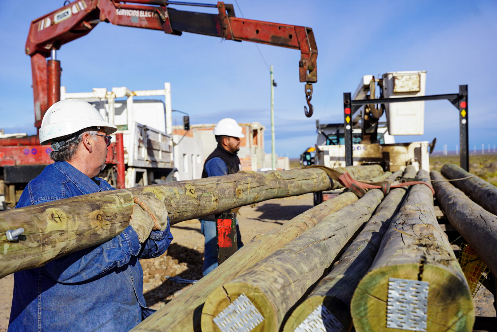 Este lunes, personal de Redes comenzó con el montaje de los postes de baja tensión en el sector. Las tareas demandarán toda la semana.