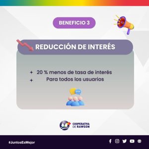 Finalmente, se decidió una reducción del 20% en la tasa de interés que venía aplicando la Cooperativa, medida aplicable a todos los usuarios.