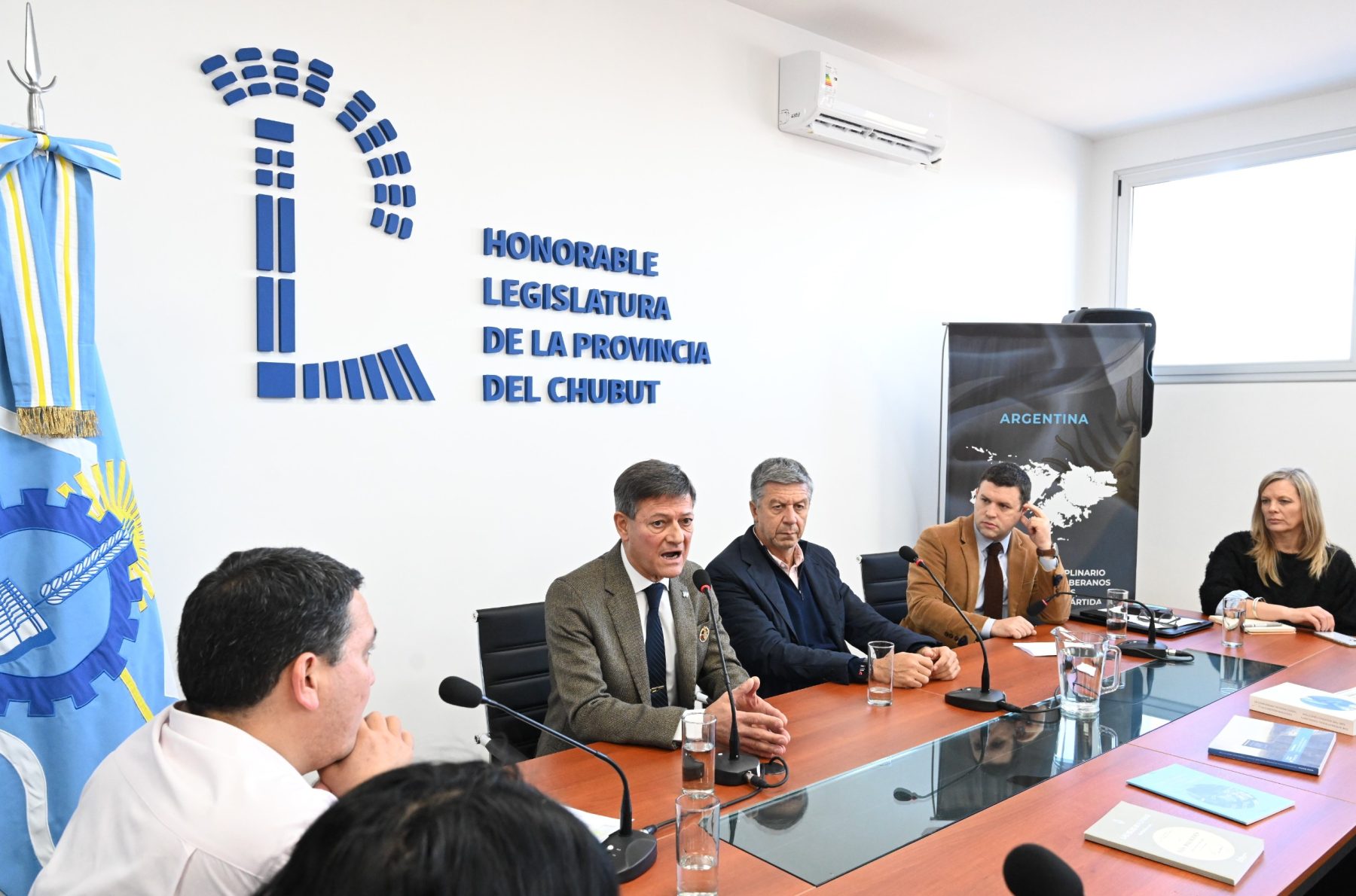 El vicegobernador Gustavo Menna y los diputados Fabián Gandón (Despierta Chubut) y Juan Pais (Arriba Chubut) encabezaron hoy viernes en la Sala de Plenarios “Dr. Jorge Eduardo Aubía” de la Legislatura la presentación y conformación del Consejo Interdisciplinario por los Derechos Soberanos sobre Malvinas, Atlántico Sur y Antártida.