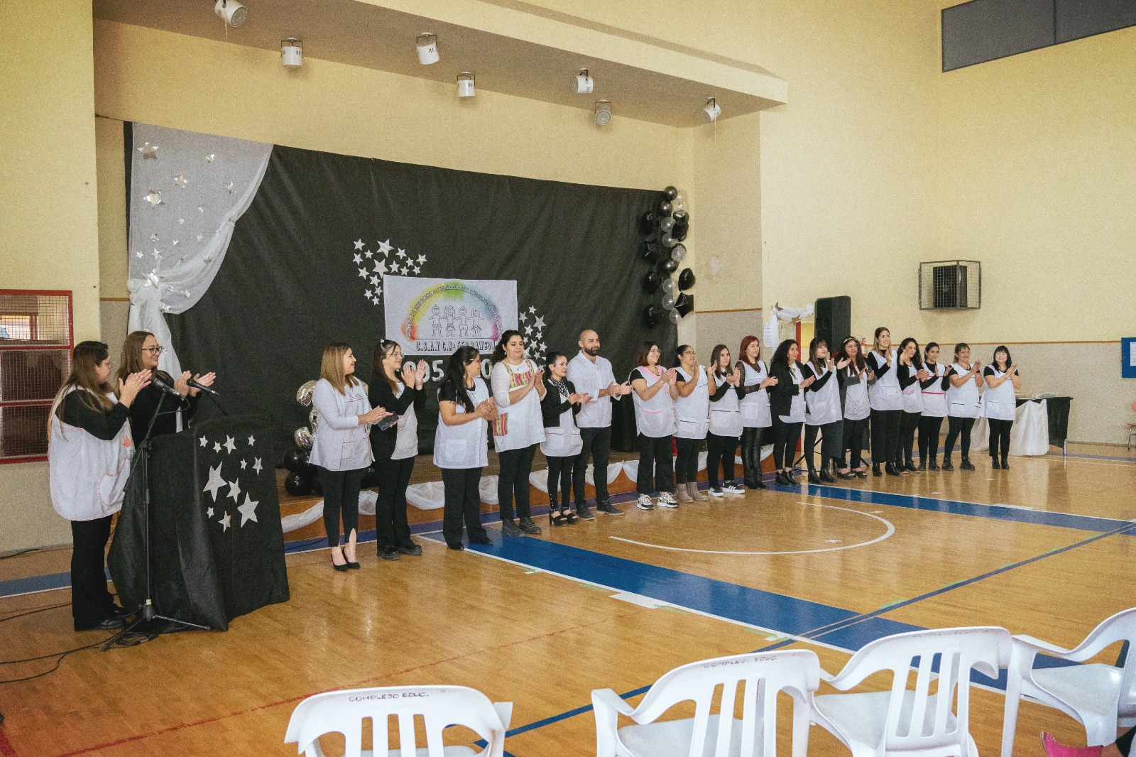 La jornada reunió a estudiantes, docentes, familias y autoridades municipales, quienes compartieron actividades conmemorativas y de reconocimiento a la labor educativa. En representación de la Municipalidad de Rawson estuvieron presentes la directora de Atención Integral a la Persona con Discapacidad, Rocío Duarte Malla; la directora general de Acción Educativa, Formal y No Formal, Gabriela Locaso; el director general de Desarrollo Social, Alberto Domínguez; y la diputada, Mariela Tamame.