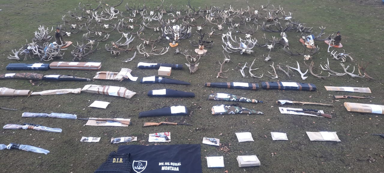 Los procedimientos efectuados incluyeron 20 allanamientos a distintos domicilios y un comercio en los que se secuestraron unas 50 armas, 4.500 municiones de distintos calibre, cinco vehículos, 47 trofeos (de ciervos y jabalí), celulares, carne, embutidos, listado de ventas, cinco máquinas de recarga, seis freezers y una heladera con unos 1.500 kilos de ciervo, cuatro balanzas, linternas y aparejos, entre otros elementos.
