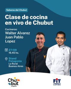 Además, el sábado a las 16:45 horas se realizará una Clase de Cocina en vivo a cargo de los chefs Walter Álvares y Juan Pablo López en el Stand Patagonia.