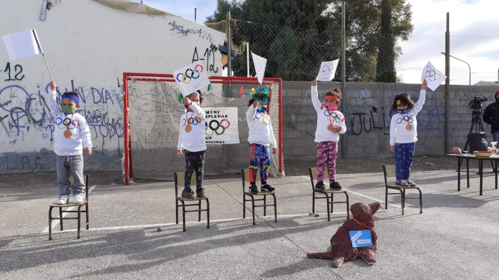 Los alumnos de la sala de 4 años de los Jardines Municipales son parte de una “mini olimpíada” cuyo objetivo es fomentar la actividad física y la alimentación saludable. La idea surgió desde la sala del Área 12 bajo una propuesta de la docente Noelia Rodríguez y del profesor Nicolás Balcázar.