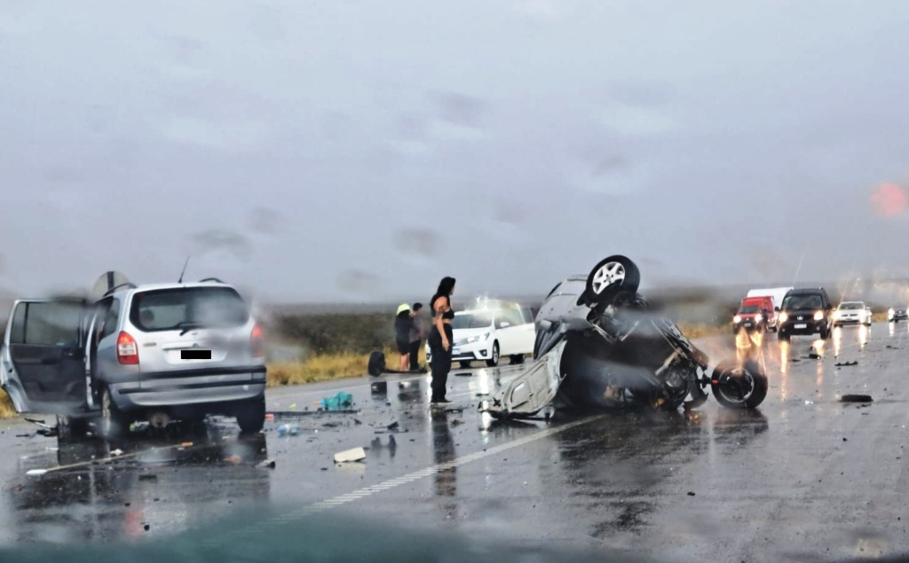 La tragedia ocurrió ayer a las 17 horas cuando la lluvia arreciaba en nuestra zona. El múltiple choque involucró a tres rodados particulares que circulaban sobre la ruta 3 entre Madryn y Trelew. Tres personas -dos mayores y un menor- que viajaban en el mismo rodado, murieron en el acto. Sobrevivió un pequeño de dos años que también iba a bordo de ese vehículo. Además se registraron ocho heridos más, ocupantes de los restantes rodados involucrados, que fueron hospitalizados.