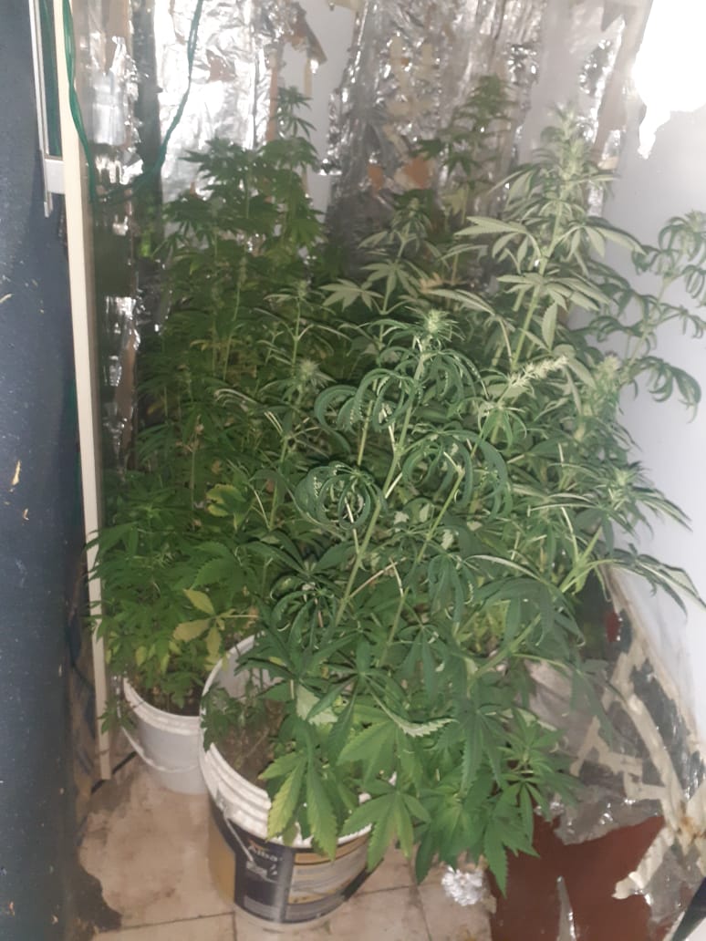 Una vez que el personal policial acudió al lugar, detuvieron al sospechoso por actitudes agresivas. Allí descubrieron que dicha persona poseía una plantación de marihuana. Fue así que la policía dio intervención a la División de Drogas Peligrosas y Leyes Especiales, quienes fueron al lugar e hicieron el secuestro de dicha plantación. La misma constaba de seis baldes con plantas de un metro de alto aproximadamente, una planta preparada para el secado y una bolsa de semillas. También se secuestró un arma de aire comprimido tipo pistola con la cual, según el padre, amenazaba a los vecinos del lugar.