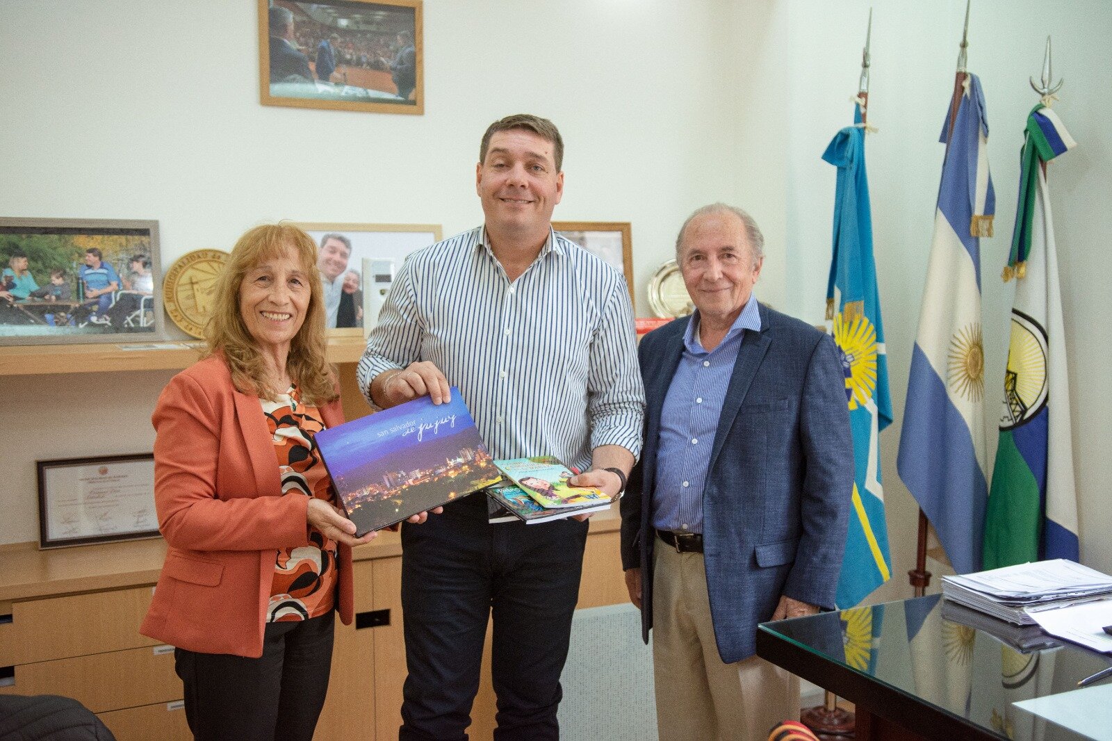 Los escritores locales Jorge Baudés y Esther Gutiérrez, visitaron este jueves al intendente capitalino, Damián Biss, para hacer entrega de presentes enviados por las Municipalidades de las provincias de Salta y Jujuy. La participación en las provincias fue a través de una convocatoria por la Sociedad Argentina de Escritores.
