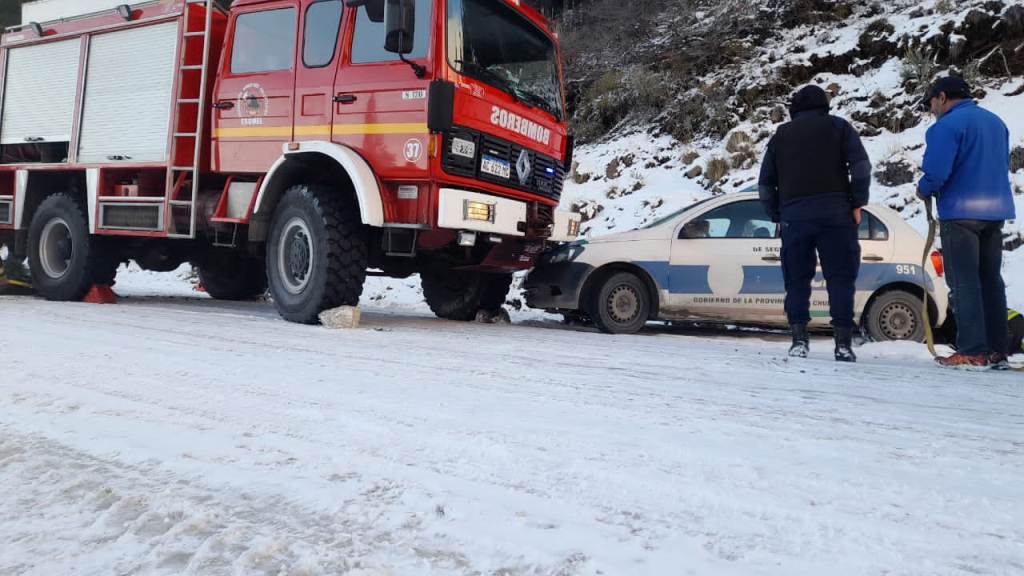 Luego de eso arribó personal de Bomberos Voluntarios que al realizar un giro para que el móvil de emergencia quede con su parte trasera cerca del rodado accidentado, pero, debido al estado de la calzada también perdió el control e impactó contra el patrullero policial de la Comisaría Segunda de Esquel. Cabe señalar que no se registraron lesionados en ninguno de los dos accidentes.