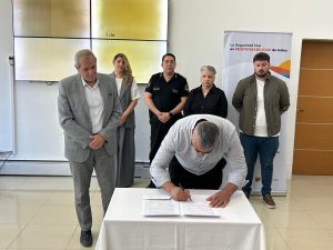 El documento legal fue firmado por los ministros de Seguridad y Justicia, Héctor Iturrioz; y de Educación, José Luis Punta; con la participación del subsecretario de Seguridad Vial del Chubut, César Vargas en instalaciones de la Jefatura de Policía en Rawson, donde concluyó esta iniciativa que busca generar instancias de reflexión sobre prácticas y conductas en el espacio público, brindar recursos didácticos que contribuyan a un proceso de transformación y construcción de una nueva cultura vial.