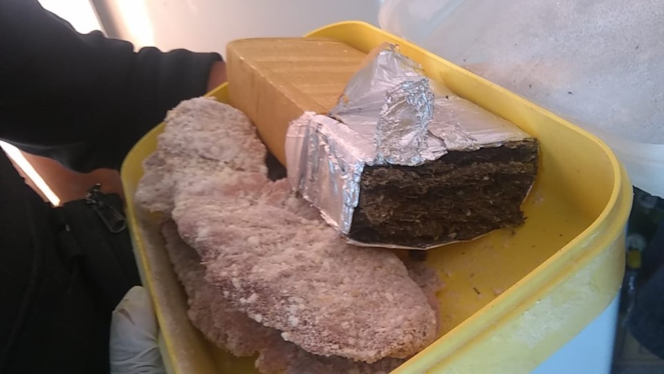 Del domicilio situado en el barrio Área 12, no se efectuó secuestros de interés para el caso, mientras que en el restante situado en el barrio Malvinas se incautó un total de 13.000 pesos en efectivo, Cannabis compacta de un peso total de 1 kilo con 158 gramos, discriminada en 07 fragmentos de 188 grs. En total, un fragmento tipo ladrillo de 204 grs. Y un fragmento tipo ladrillo de 766 grs.