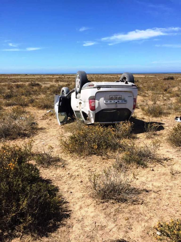 En horas de la tarde del domingo a 85 kilómetros de Puerto Pirámide en lugar denominado Caleta Valdés sobre la Ruta 52 se produce un accidente de tránsito que involucra a un matrimonio de turistas identificados como DMitri Atcaner y Naptampa Margarita de procedencia rusa.