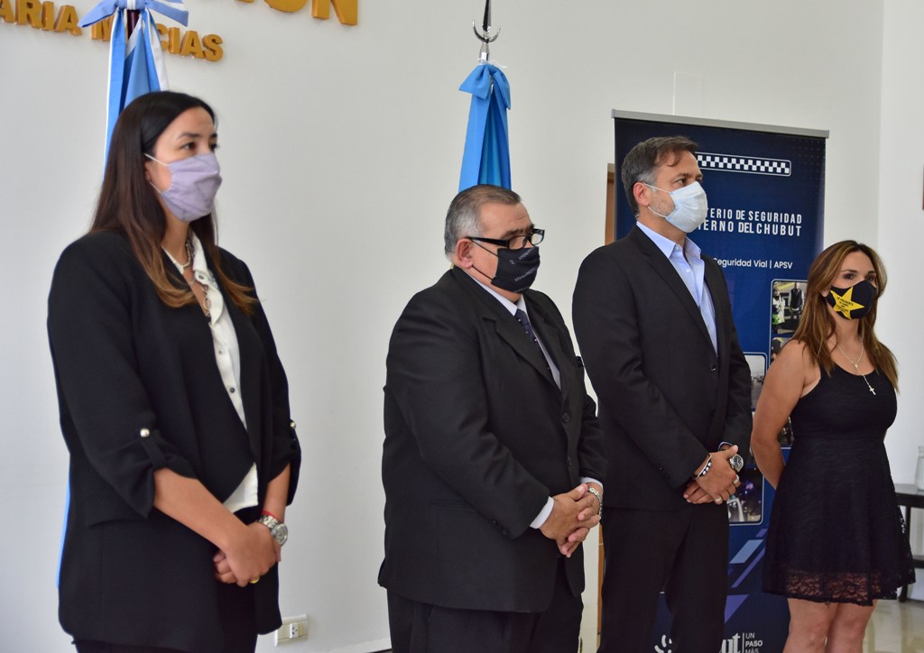 El acto se desarrolló esta mañana en la Sala de Situación de la Jefatura de Gobierno en Rawson, y estuvieron presentes también el jefe de la Policía, Comisario General Víctor Acosta, y el subjefe Comisario Mayor Retirado, Luis Cayupil, como así también distintos miembros de la plana mayor de la fuerza provincial.