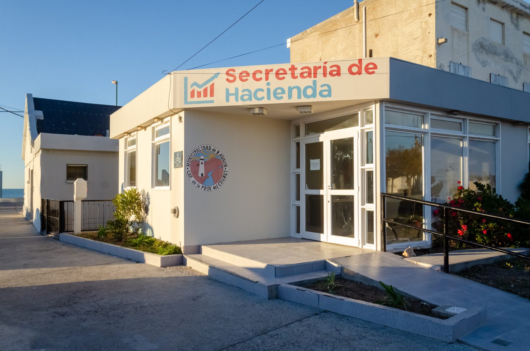 El intendente de Rawson, Damián Biss, el Secretario de Hacienda, Martín Sterner y el Secretario de Planificación, Obras y Servicios Públicos, Fernando Vosecky, visitaron este viernes las nuevas oficinas de Hacienda en Playa Unión.