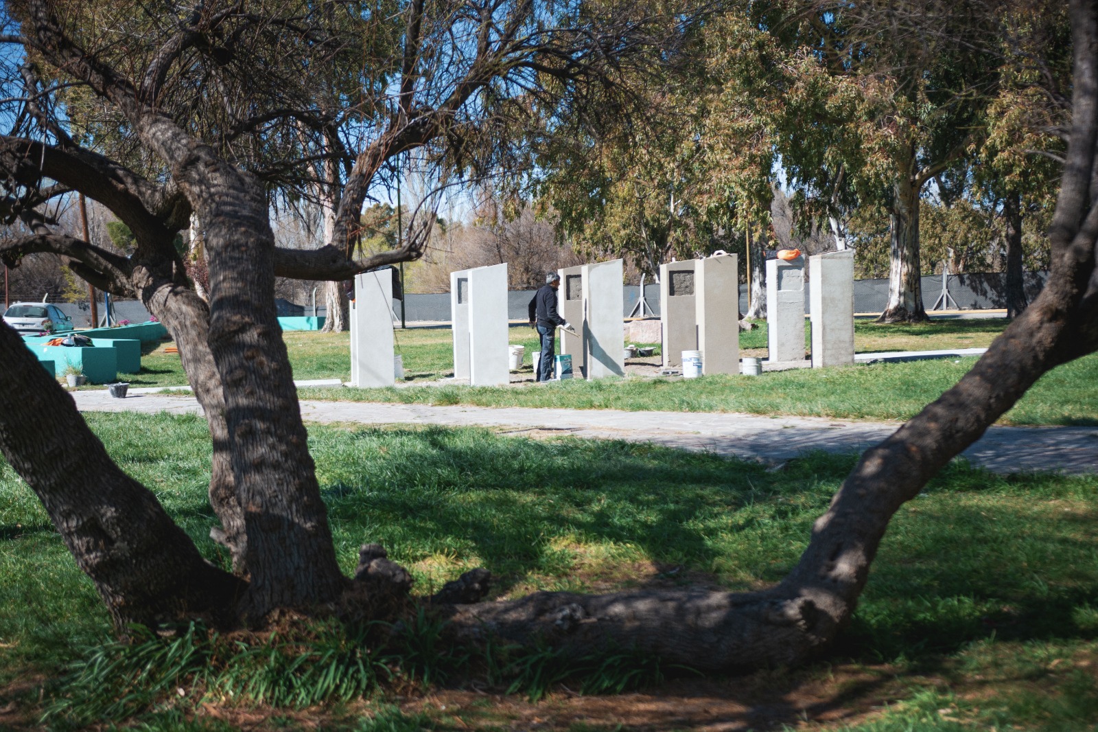 Añadió que “por tal motivo, se está embelleciendo y reacondicionando ese sector con la pintura de los muretes y la construcción e instalación de bancos para la plaza, íntegramente construidos por el personal de la Secretaría de Obras y Servicios Públicos”.