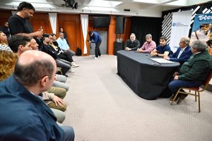 La actividad se llevó adelante en las instalaciones de la Cámara de Comercio de Trelew, y también contó con la participación del intendente local, Gerardo Merino; el ministro de Educación provincial, José Luis Punta; y el presidente de la FECh, Carlos Lorenzo; además del titular de la CICECh, César Pailacura.