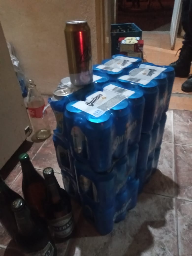 Como resultado, se procedió al secuestro de 3 cajones tipo esqueleto para envases, marca “Quilmes”, (01) envase vacío de 1Lt de cerveza Palermo, (34) botellas de cerveza de 1Lt. “Palermo”, (01) botella de 330ml “Miller”, (10) cajas de vino tinto de 1Lt. “Toro”, (77) latas de 473ml marca “Quilmes”, (02) botellas de cerveza de 970cm3 “Palermo”, (01) lata de cerveza de 473ml “1890” y otros elementos de interés para la causa.