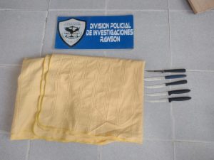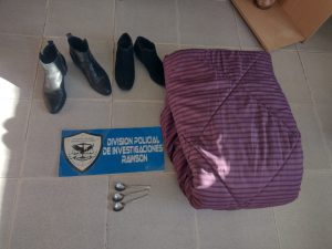 Constituidos en el domicilio de la sospechosa las acciones de allanamiento arrojaron resultados altamente positivos procediendo al secuestro de varios de los elementos denunciados tales como utensilios, frazadas, ropa de cama, zapatos y bolsos de viaje.
