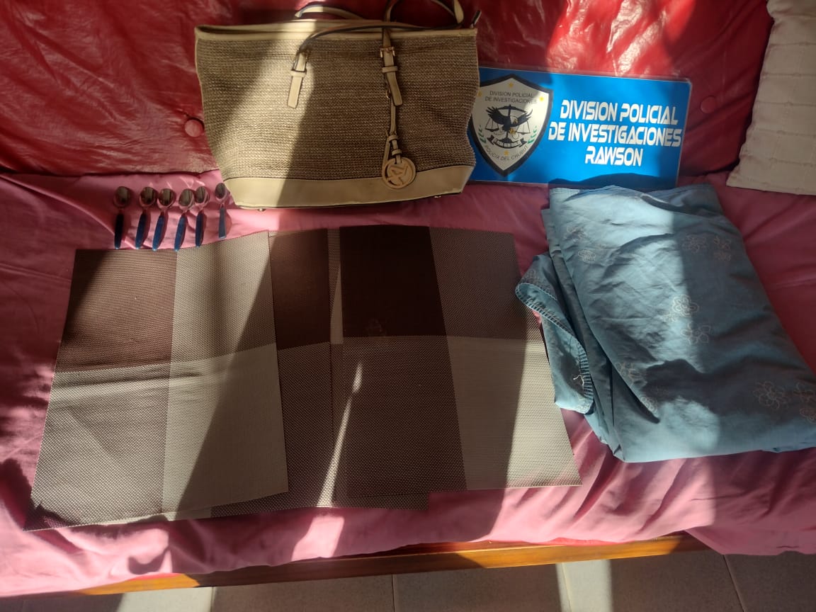 Constituidos en el domicilio de la sospechosa las acciones de allanamiento arrojaron resultados altamente positivos procediendo al secuestro de varios de los elementos denunciados tales como utensilios, frazadas, ropa de cama, zapatos y bolsos de viaje.
