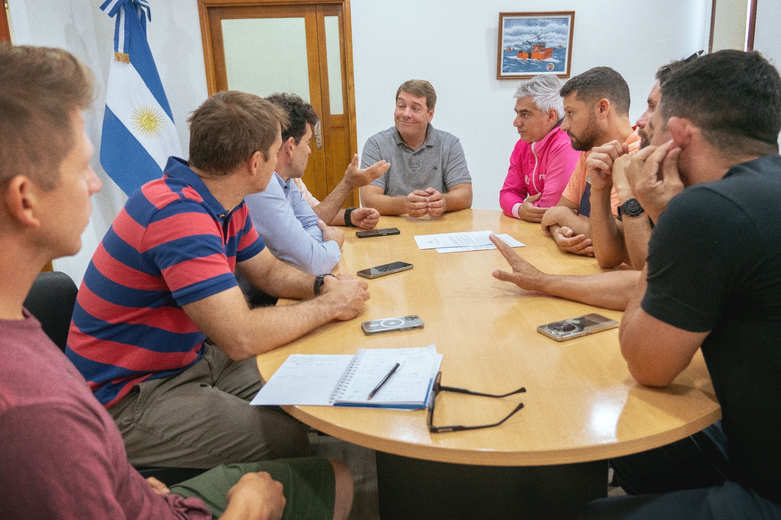 Este martes por la mañana, el intendente de Rawson Damián Biss recibió a integrantes de la Asociación de Navegantes de Bahía Engaño (ANDBE), incluyendo al vicepresidente Darío Duarte y al representante Miguel Lupi, junto al director de Deportes, Andrés Maidana, para coordinar la organización estratégica del evento.