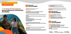 Con el objetivo principal de fomentar y potenciar la producción vitivinícola y el enoturismo en la provincia, el Gobierno del Chubut organiza la 1º Jornada de Capacitación para productores vitivinícolas de Chubut, entre los días martes 26 y jueves 28 de noviembre.