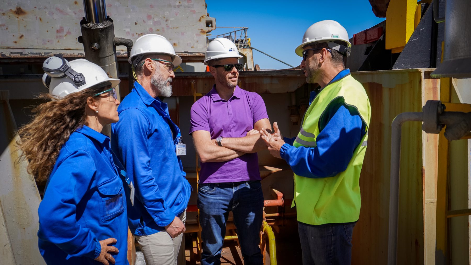 Posteriormente, realizaron una recorrida por el Sitio 3 del Muelle Almirante Storni, donde se desarrolla la carga de exportación de aluminio en el buque TBC Praise, el cual embarcará un total de 25.300 toneladas de aluminio primario en diferentes presentaciones.