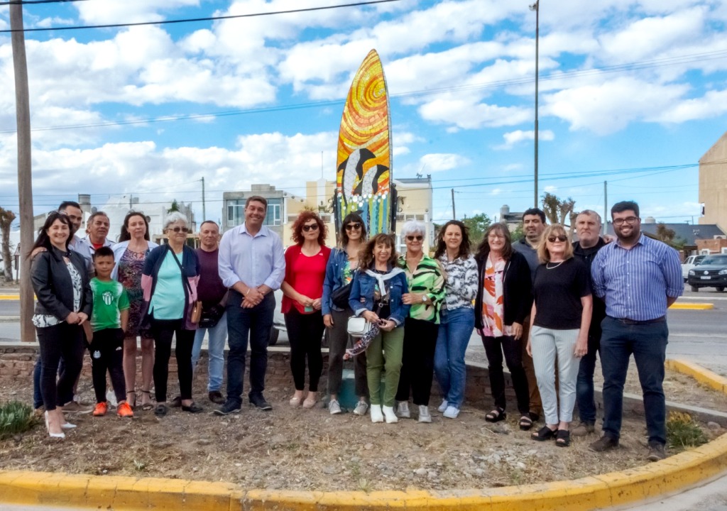 En este caso, se destacó que Walter Ñonquepan donó la tabla de surf que fue intervenida con la técnica de mosaico y que Emilio Silva, herrero y mosaiquista, colaboró con la construcción de la estructura.