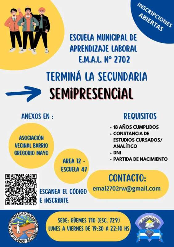 De esta forma, Luis Walker, expresó que “las personas interesadas en finalizar sus estudios secundarios deben tener 18 años en adelante, y se tienen que acercar a la escuela con la constancia analítica de sus estudios cursados, DNI y la partida de nacimiento”.