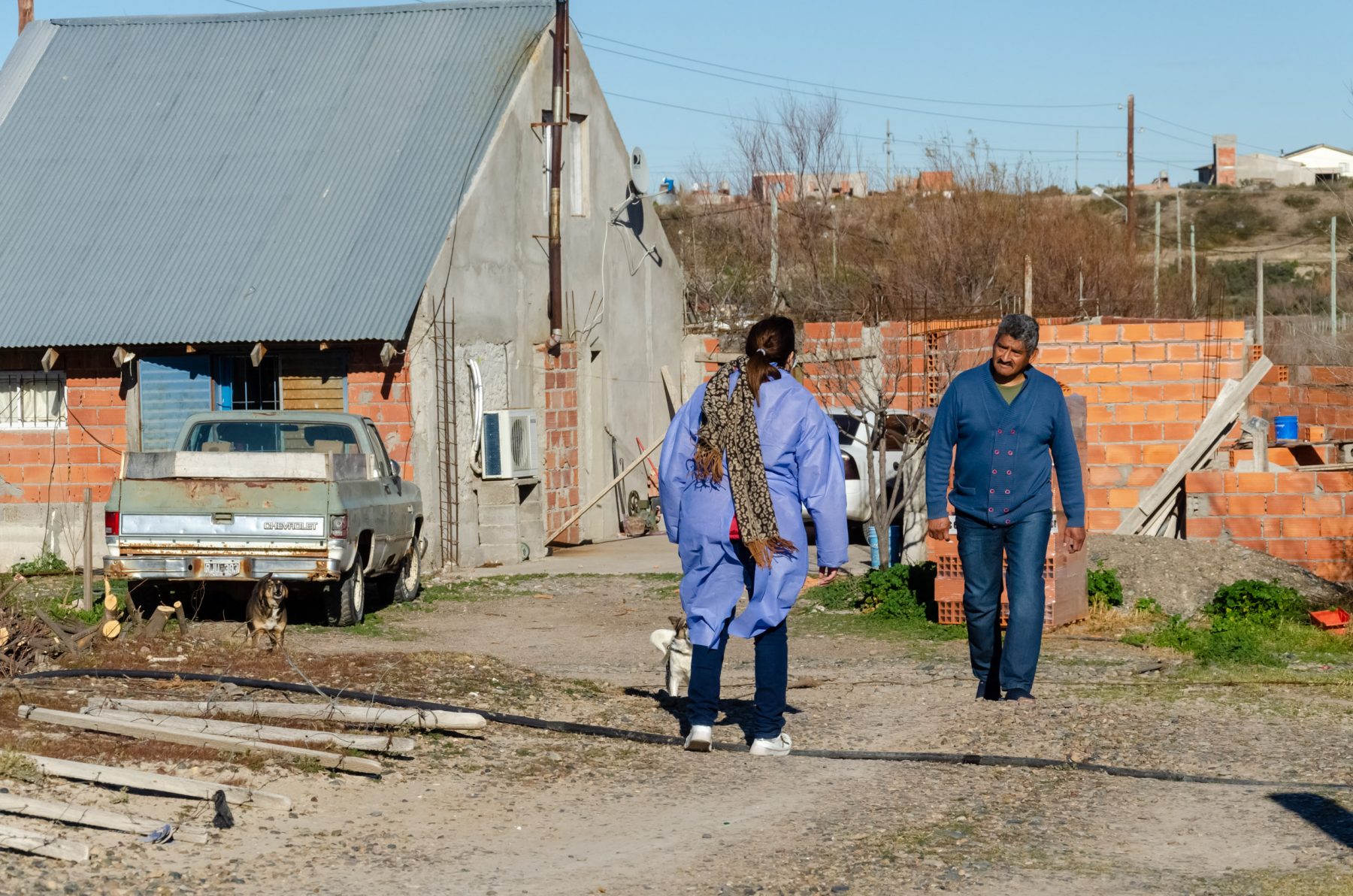 Durante la jornada de este lunes por la mañana, las trabajadoras del área de Vacunación del Hospital Subzonal “Santa Teresita” de Rawson, recorrieron el barrio ex IAC en ruta 25, realizando la aplicación de la primera dosis de la vacuna contra el coronavirus a los vecinos.