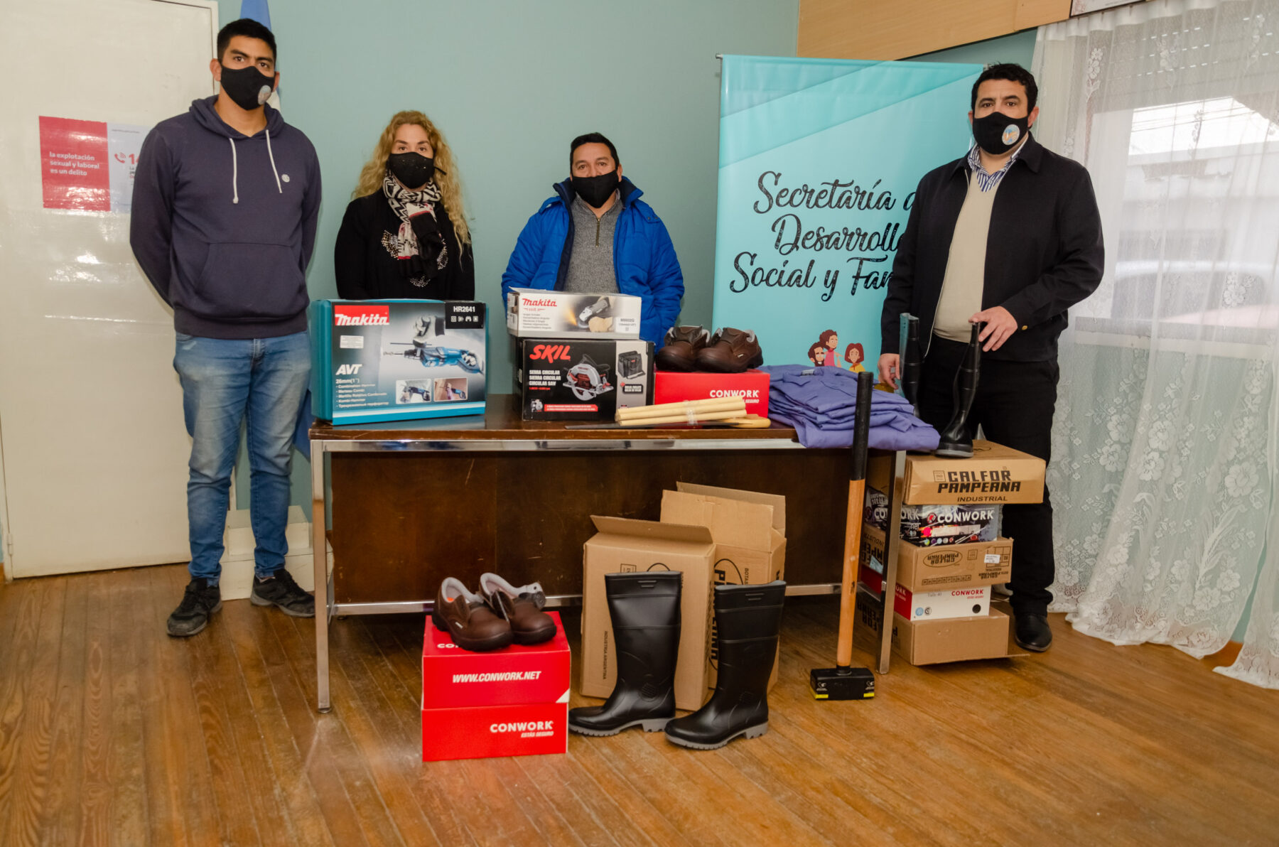 El secretario de Gobierno, Educación y Coordinación de Gabinete, Miguel Larrauri y la secretaria de Desarrollo Social y Familia, Lic. Silvana Cendra, hicieron entrega de indumentaria a los trabajadores municipales del área Social.