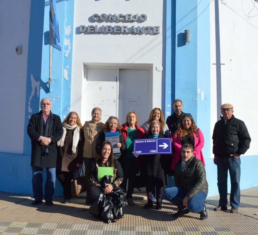 Con la participación de los diez concejales que conforman el cuerpo legislativo municipal se llevó a cabo la lectura de la ordenanza que fuera sancionada en Diciembre del año pasado, cuyas copias se entregaron a los familiares, al igual que una réplica del cartel que identificará la calle con el nombre Dencor & Albania.