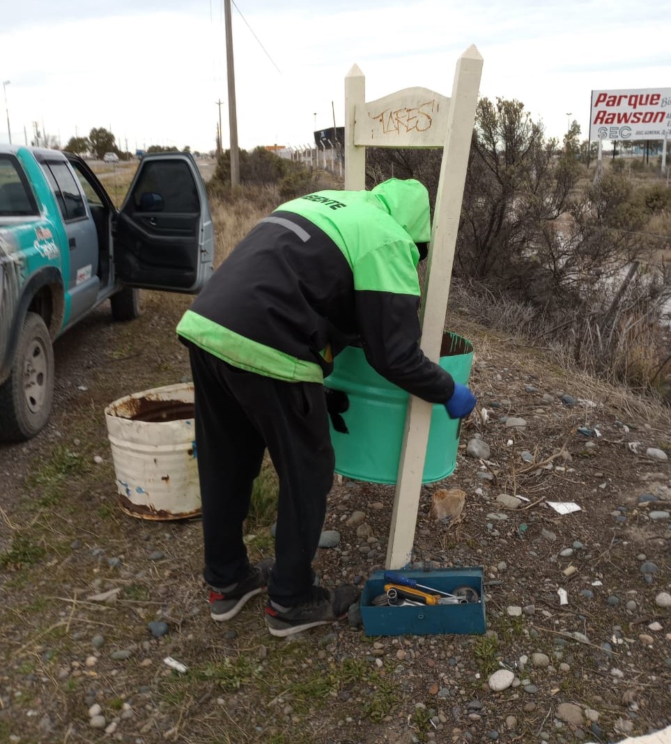 La Secretaría de Ambiente, Producción y Desarrollo Sustentable del municipio de Rawson, realizó el recambio de cestos de residuos en la doble trocha que une el casco céntrico con Playa Unión.