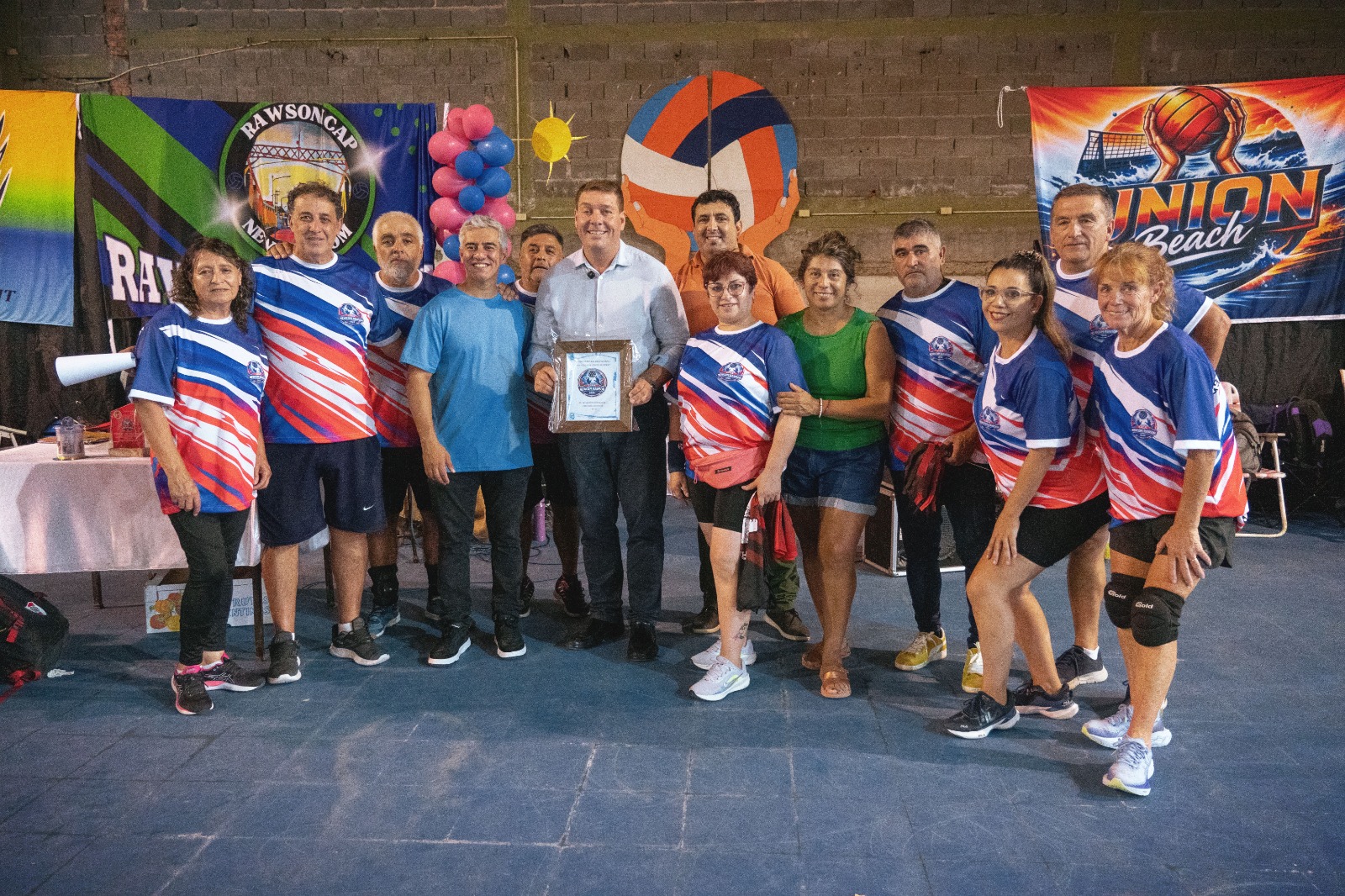 Estuvieron presentes el intendente de Rawson, Damián Biss; el secretario de Ambiente y Desarrollo Sustentable, Miguel Larrauri; el director de Deportes, Andrés Maidana; integrantes de la comisión directiva y los equipos que conforman la liga.