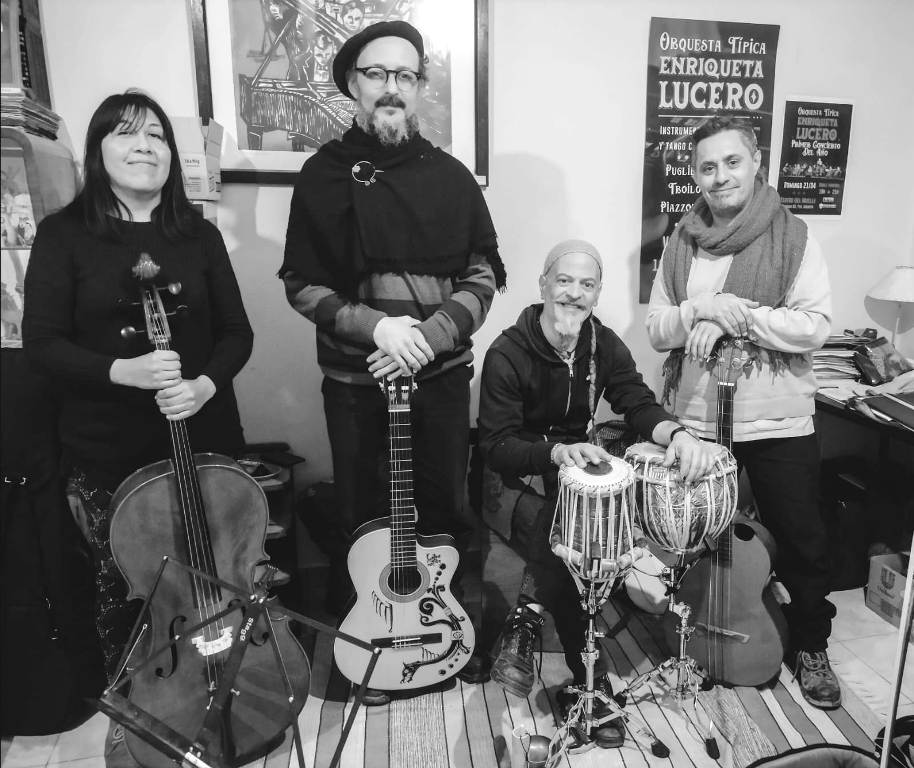 El grupo está integrado por Diego Corso Muscia en voz principal, djembé, derbake, tabla, cajón, caja, bodhran, tambor hablador, batería, daff, cuencos, birimbao, accesorios, ronroco y mandolina; Ariel Grock Gómez en bajo, guitarra y voces; Susana Quilaqueo en violín, violonchelo y bandoneón; y Pablo Ceriotti en guitarra, flautas dulces, violonchelo, melódica y voces.