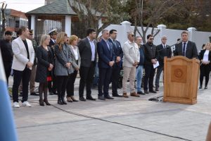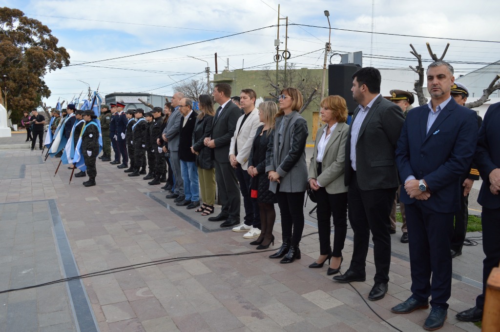 El acto se llevó a cabo en la esquina de Belgrano y Diagonal Fontana donde se erige el monumento que evoca al prócer argentino en Rawson y contó con la presencia de los ediles Juan Flores Revillot; Norma Medina; Gladis Poblete, Karina Barneche y Germán Gusella, acompañando al intendente Damian Biss que presidió la conmemoración. También tomaron parte la Ministro de la Producciòn, Laura Mirantes, el Subsecretario de Cultura Osvaldo Labastie, integrantes del gabinete municipal y el diputado Sixto Bermejo