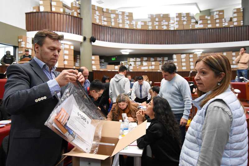 Una vez finalizado el escrutinio definitivo en Legislatura, el proceso se completará en las próximas horas con la carga al sistema informático de la última tanda de actas, correspondientes al viernes -este proceso se ha venido cumpliendo de manera continua en días anteriores – y su posterior procesamiento por el software, a fin de adicionar los votos de extranjeros al cómputo de cada localidad y por otro lado efectuar el cálculo de las bancas legislativas provinciales y municipales por sistema D’hont o proporcional.