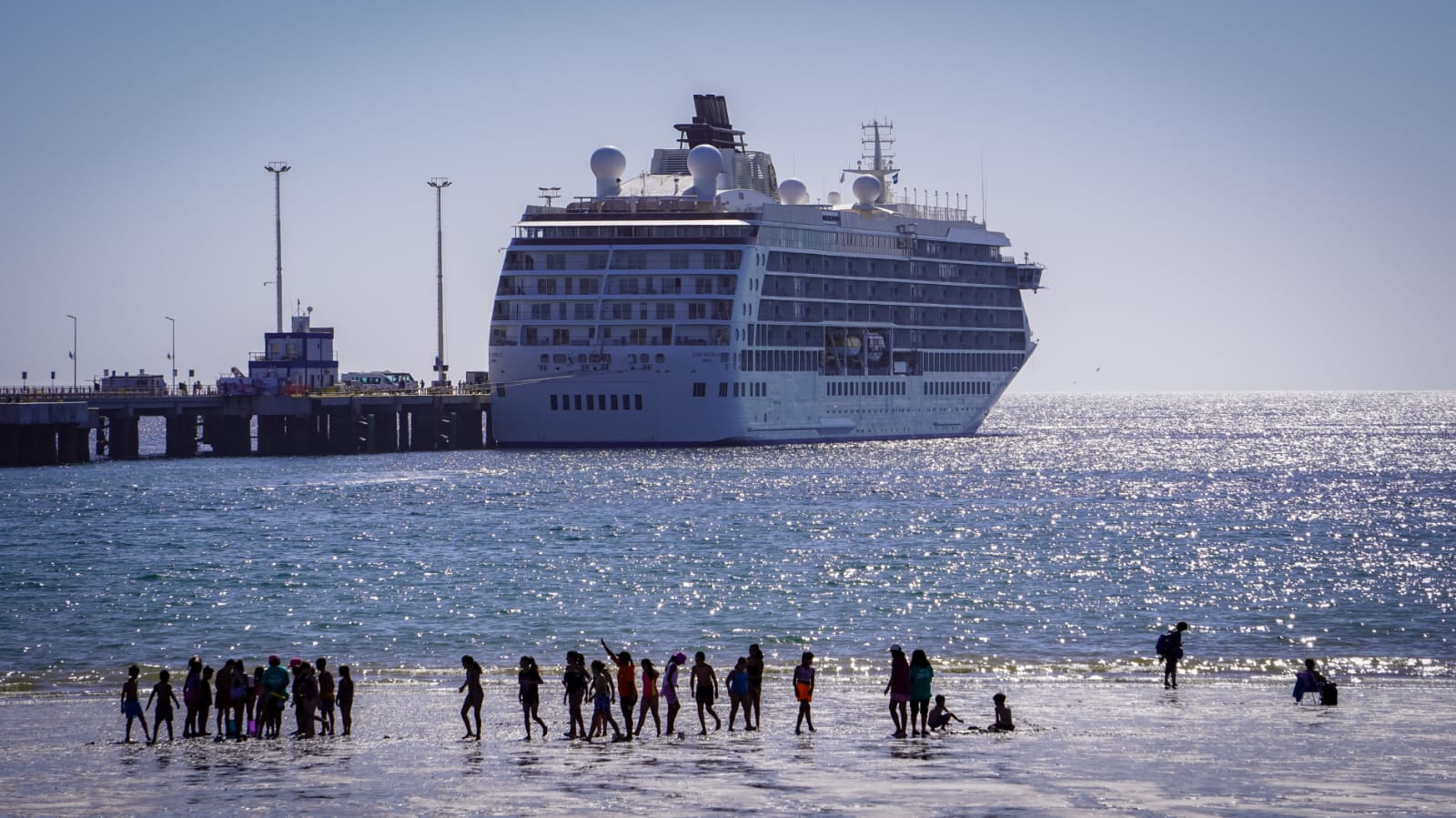 Minutos después de las 9 horas de este lunes, tomó amarras sobre el lado sur del Muelle Comandante Luis Piedra Buena, el buque de pasajeros “The World”, considerado como el buque residencial privado más grande del planeta.