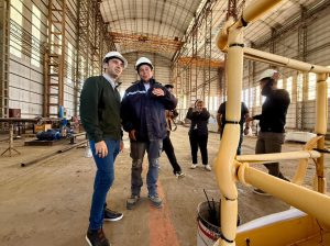 En el sector de Naves Industriales avanzan las reparaciones integrales de cubierta y costados, el armado del Taller de Calderería y del Taller de Mecánica; mientras que en el sector de Gradas y Transferencia se concretó la remoción completa del antiguo sistema y se lleva adelante la nivelación y preparación para la instalación de pilotes, elevando la capacidad de traslación a 1.600 toneladas.