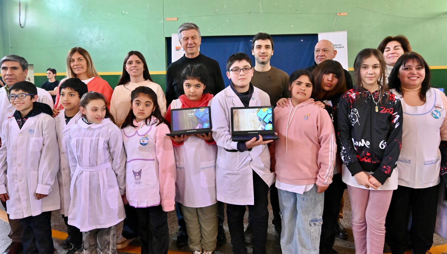 La entrega encabezada por Torres consistió en equipamiento enmarcado en el Programa de Fortalecimiento Tecnológico para Instituciones Educativas, que impulsa el Ministerio de Educación de Chubut.