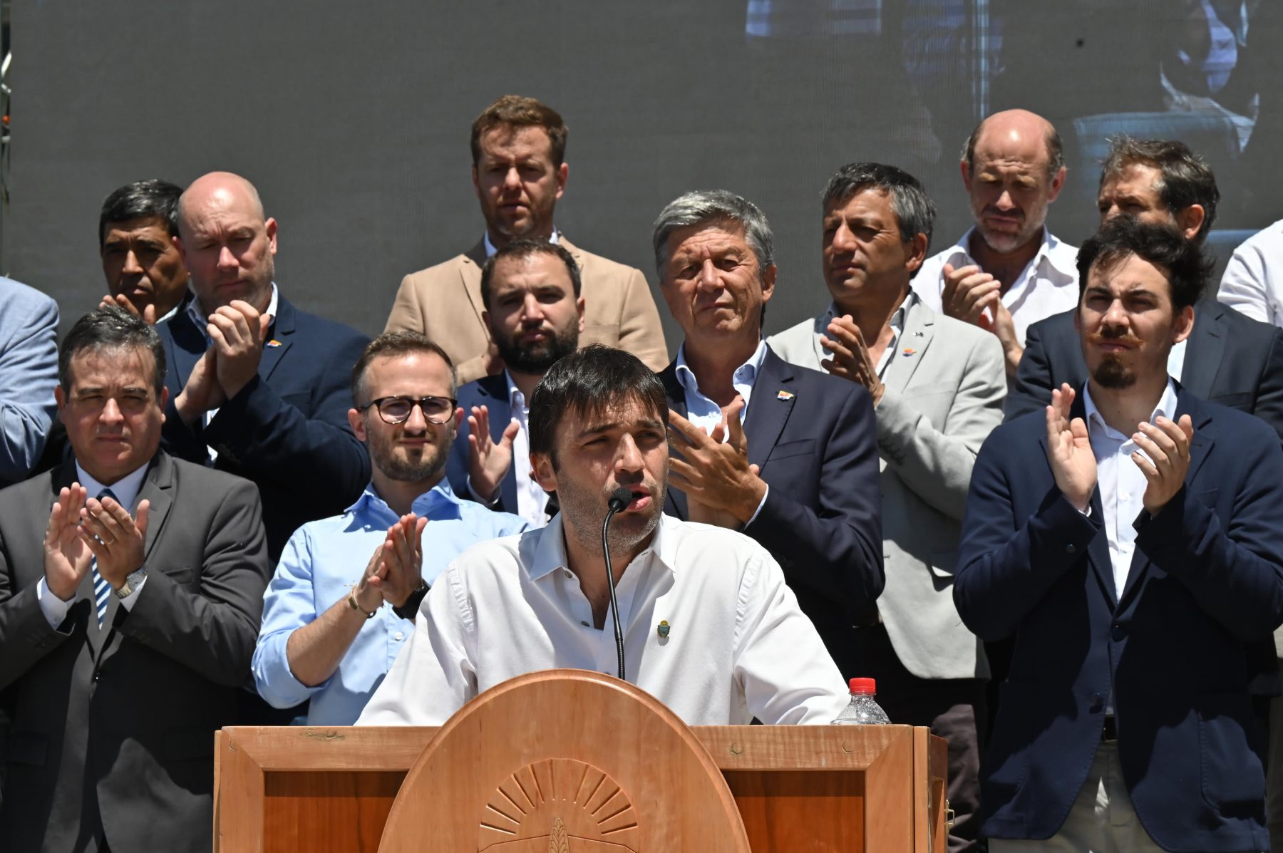 En un escenario montado en la explanada del Ministerio de Educación en Rawson, y acompañado por el vicegobernador Gustavo Menna y titulares de las diferentes áreas del Gabinete; el mandatario indicó que “en solo un año hemos logrado ser un ejemplo de superación, pasamos a ser una provincia pujante, decidida profundamente a nunca más volver a ser el ejemplo de lo que está mal y a empezar a ser modelo de la transparencia, la producción y el trabajo”.