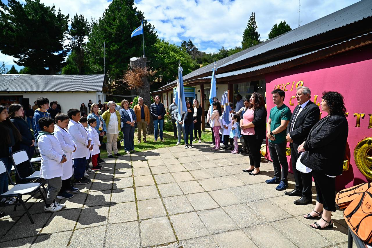 El mandatario encabezó el acto en la Escuela N° 97 de Aldea Atilio Viglione, inaugurando las clases en tiempo y forma por tercer año consecutivo. En su mensaje, el titular del Ejecutivo reivindicó a los pioneros “que hacen patria en lugares por mucho tiempo relegados” y destacó el trabajo de docentes y auxiliares que “acompañan en estos momentos tan difíciles que se están viviendo en la Cordillera con los incendios”.
