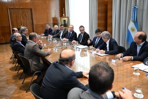 En tal sentido, el mandatario, acompañado por el ministro de Hidrocarburos de Chubut, Federico Ponce, mantuvo un encuentro con el ministro de Economía de la Nación Luis Caputo; el secretario de Coordinación de Energía y Minería de la Nación, Daniel Gonzáles; el ministro del Interior de la Nación, Diego Santilli; y el jefe de Gabinete de Ministros, Manuel Adorni. Por el sector gremial, estuvieron presentes Emiliano Mongilardi (Sindicato del Petróleo y Gas Privado de Chubut); y Luis Villegas (Sindicato Petrolero Jerárquico de la Patagonia Austral).