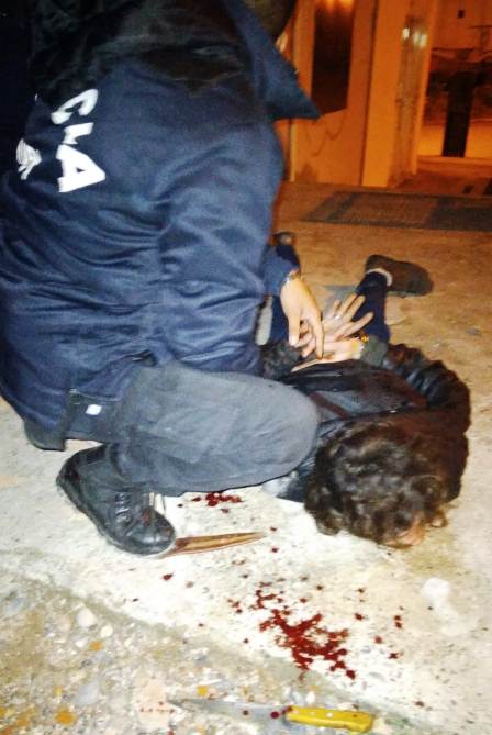 Seguido de esto, el sujeto sacó de entre sus ropas un cuchillo y lesionó a uno de los empleados policiales en uno de sus dedos. Lograron reducirlo y esposarlo.